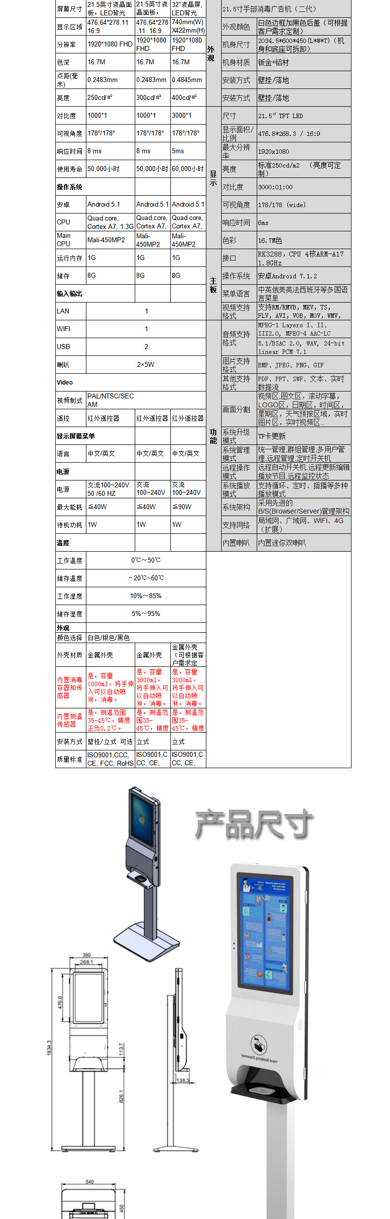 32寸手部消毒測溫廣告一體機(3L)